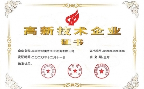 耐美特企業高新技術企業證書